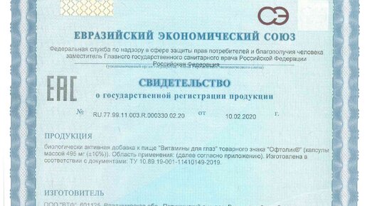 1. Сертификат соответствия и свидетельство о государственной регистрации - витамины для глаз "ОФТОЛИК®" 2. Сертификат анализа и регистрационное удостоверение - капли глазные "ОФТОЛИК®" 3. Сертификат анализа...