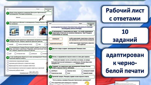 Рабочий лист «Заповедники России (Остров Врангеля, Большой Арктический заповедник). Охрана природы»