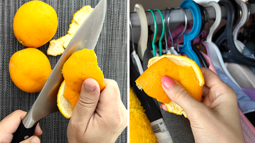 Для чего надо прятать апельсиновые корки в одежду и натирать ими ножи: 9 полезных хитрстей использования корок апельсинов