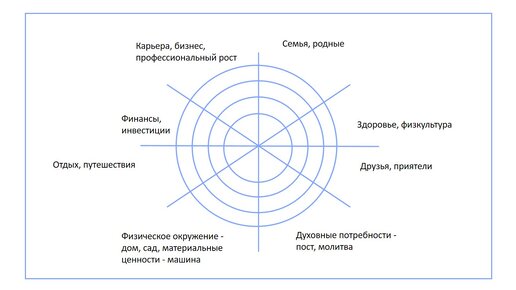 Это статья из цикла статей про ПОСТАНОВКУ ЦЕЛЕЙ. Чтобы ознакомиться с остальными, загляните в конец статьи. Диаграмма жизненного баланса - что-то вроде вспомогательной линейки для вашего текущего жизненного состояния. Иногда люди жалуются на свою жизнь - тогда им может вполне понадобиться такой инструмент. Чтобы это сделать, представьте свою жизнь в виде идеальной картинки. Чтобы вы хотели принести в свою жизнь? Больше занятий спортом, освоение кулинарии, больше общения с близкими и друзьями? Попробуйте выписать их в список...