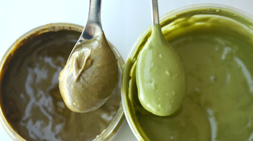 Все же любят фисташковые тортики, мороженое и какие-нибудь другие подобные десерты?! Ингредиент, который придаёт им основной вкус - ФИСТАШКОВАЯ ПАСТА. 😜 Не все понимают, что паста эта бывает совершенно разной. Название одно, а вот вкус совершенно не похож друг на друга! Расскажу на примере фото. ⬅️ СЛЕВА - паста полностью натуральная. Чаще всего, это 100% фисташка. Ее ещё можно назвать фисташковым урбечем. Могут туда ещё масло растительное добавить или сахарок. Вкус ее нежный и изящный, без ароматизаторов...