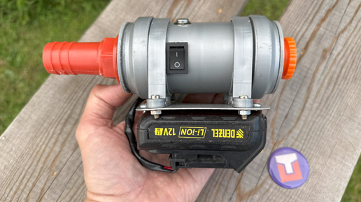 Самодельный аккумуляторный насос, воздуходувка из сантехнической муфты. Нужная вещь в хозяйстве
