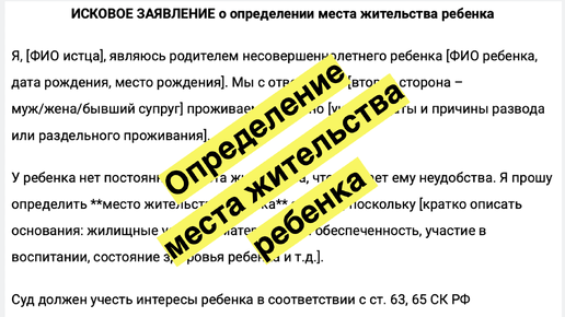 Что такое определение места жительства ребенка? Определение места жительства ребенка предполагает, что родители или суд принимают решение о том, с кем  - матерью или отцом - будет проживать ребенок. Как правило, возникает вопрос об определении места жительства ребенка при разводе (после развода), когда родители разъезжаются. Но также он может быть актуальным для родителей, которые официально не регистрировали свои отношения и жили в так называемом гражданском браке. Давайте обратимся к Гражданскому кодексу РФ (ст...