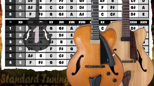 Standard Tuning. Расположение нот на грифе в стандартном строе гитары.