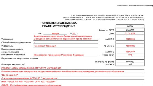 Инструкция по заполнению Пояснительной записки ф. 0503160 с образцом