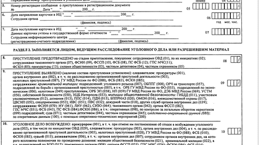 Статистические карточки или больше не чем заняться в МВД? Я отработал 8 лет следователем в городском управлении. Больше всего в следственной работе меня за....ло выставления статистических карточек. Итак, карточки бывают: форма N 1 - статистическая карточка на выявленное преступление; форма N 1.1 - статистическая карточка о результатах расследования преступления; форма N 1.2 - статистическая карточка на преступление по которому лицо его совершившее установлено. форма N 2 - статистическая...