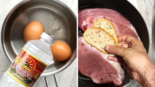 Для чего надо добавлять уксус при варке яиц, а корочку хлеба в сковороду при жарке мяса: 8 умных советов для кухни