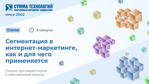 Сегментация (сегментирование) — метод в маркетинге, суть которого — в разделении рынка на группы, обладающие одинаковыми значениями признаков и отличающиеся одна от другой. Cегментация делается не потому что хочется. Cегментация делается для чего-то. Выделяются группы, имеющие различные требования к товару или сервису. Выделяются группы, различающиеся по способу принятия решения о покупке. Сегментация по личностным характеристикам внутри сегментов по способу принятия решения...