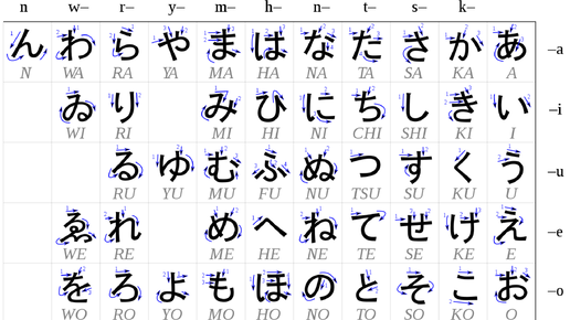 Итак, сегодня я покажу, как я подошла к запоминанию кан, и поделюсь "шпаргалкой" к первому столбцу хираганы. Но сначала ещё немного лирического отступления. Возможно, кто-то, как и я, долгое время думал, что японцы пишут справа налево, как, например, в иврите и арабском языках. Отчасти, так оно и есть. Давайте ещё раз взглянем на таблицу кан хираганы, которую я приводила в предыдущем посте: Столбец, с которого начинается изучение обеих азбук - крайний правый. Да, некоторые учебники отзеркаливают...