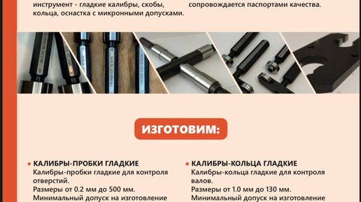 Калибры бесшкальные контрольные инструменты, предназначенные для установления соответствия действительных размеров, форм и взаимного расположения поверхностей деталей заданным. Контроль калибрами не дает возможности определить действительные отклонения размеров детали, но позволяет установить, находятся или нет отклонения размеров в заданных пределах. В зависимости от вида контролируемых деталей различают калибры для проверки гладких цилиндрических поверхностей (валов и отверстий), гладких конусов,...