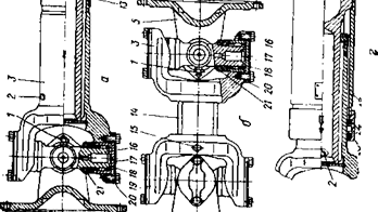 КАРДАННАЯ ПЕРЕДАЧА. Карданная передача автомобиля (рис. 17) состоят из пяти карданных валов и промежуточной опоры, соединяющих коробку передач с раздаточной коробкой и с ведущими мостами. В конструкции карданных валов применено подвижное шлицевое соединение, состоящее из скользящей вилки и шлицевого конца вала, которые обеспечивают необходимое изменение рабочей длины карданного вала при движении автомобиля. Все карданные валы, кроме основного (расположенного между коробкой передач и раздаточной коробкой),...