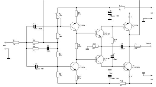 Высококачественный УМЗЧ класса В Дорофеева (практически не имеет нелинейных искажений)