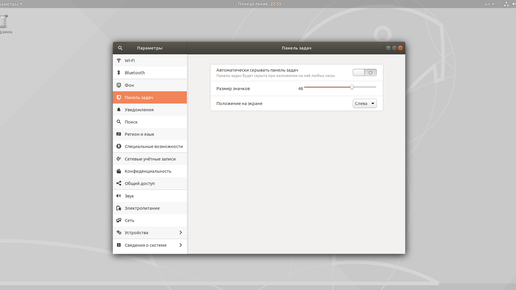 Настройки Ubuntu. Панель задач