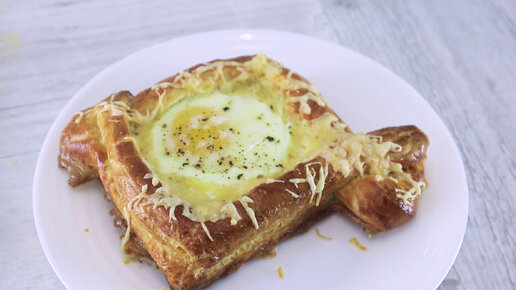 Слойка с яйцом на завтрак. Вкусный семейный завтрак.