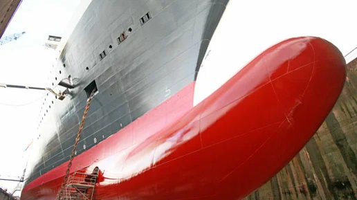 Эта штука не видна над поверхностью воды, и представляет собой каплевидное утолщение в подводной, носовой части корабля. Дело в том, что, когда корабль идет, он расталкивает толщу воды своим носом, из-за чего создается зона повышенного давления. Это увеличивает расход топлива и снижает скорость. Бульб же и является решением проблемы: благодаря ему количество воды в волнах, образованное носом корабля снижается. Более того, он также снижает силу волны, образованную форштевнем. Бульб наиболее эффективен:...