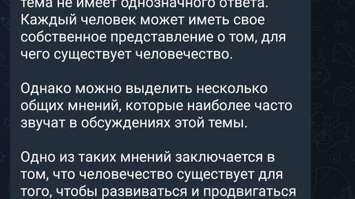 Как и многие другие вопросы, эта тема не имеет однозначного ответа. Каждый человек может иметь свое собственное представление о том, для чего существует человечество. Однако можно выделить несколько общих мнений, которые наиболее часто звучат в обсуждениях этой темы. Одно из таких мнений заключается в том, что человечество существует для того, чтобы развиваться и продвигаться вперед, открывая новые знания, достижения и технологии. Благодаря этому человечество сможет в будущем жить более комфортно, безопасно и счастливо...
