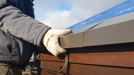 Монтаж капельника на гибкой черепице двухскатной крыши площадью 60 м²