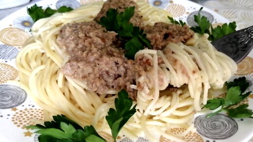 Паста с фаршем в белом соусе. Что я добавляю в фарш, чтобы он получился нежным и вкусным.
