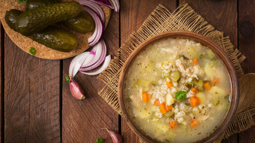 Рассольник - это второй по популярности после щей классический русский суп. Обязательными ингредиентами этого блюда являются овощи: огурцы, морковь, лук. Остальные ингредиенты могут быть использованы в различных вариациях. Бульон варят из любого мяса: курицы, свинины. Классический рассольник готовят на говяжьем бульоне. В качестве крупы можно использовать не только перловку, но и рис. А вместо огуречного рассола добавить яичный лезьон. Однако классический русский суп, во время приготовления которого добавляют не только рассол, но и соленые огурцы, известен своим оригинальным вкусом...