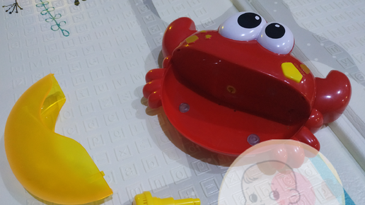 На первый день рождения ребёнка, нам подарили много игрушек для ванной, среди них был краб на присосках. И оказался он генератором пены. Я такое видела впервые, как то не изучала рынок игрушек для купания. Когда малыш хотя бы сидит, данная игрушка ему будет интересна. Это что-то китайское, потому что инструкции на русском не было, но была на английском, поэтому мы разобрались как с ним себя вести. Работает он от двух пальчиковых батареек, отсек завинчивается шурупчиками. Я конечно не знаю опасны...