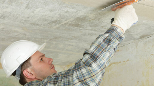 Оштукатуривание, шпатлевание и грунтовка потолка