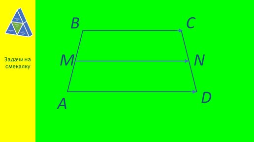 Добрый день, уважаемые любители математики! Для тех, кто хорошо владеет векторным методом: Это все доказательство! Если в нем все понятно, листайте до следующей "зеленой формулы". Если же нет - читайте дальше. Пояснения Трапеция ABCD разбивается средней линией MN на две меньших трапеции. Первое равенство получается из верхней трапеции (MBCN), а второе - из нижней (AMND). Дальше складываем эти два равенства (левую часть - с левой и, соответственно, правую - с правой). Векторы MB и MA противоположно направлены, при этом их длины равны (M - середина MB и MA)...