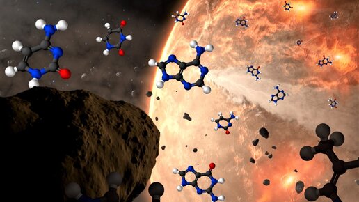 Ученые НАСА обнаружили последние две из пяти информационных единиц ДНК и РНК в метеоритах. Маловероятно, что ДНК могла образоваться в метеорите, но это открытие показывает, что генетические части могли попасть на Землю с последующим развитием до первых живых организмов. Открытие, сделанное международной командой исследователей НАСА, дает больше доказательств того, что химические реакции в астероидах могут создавать некоторые элементы для возникновения жизни, которые могли быть доставлены на Землю...