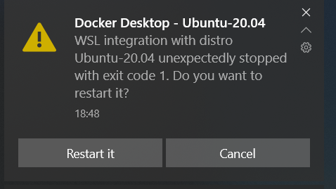Не запускается docker на windows. WSL integration with distro Ubuntu unexpectedly stopped with exit code 1.