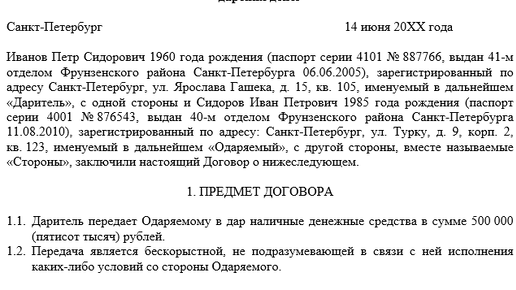 Договор дарения денежных средств - когда используется?