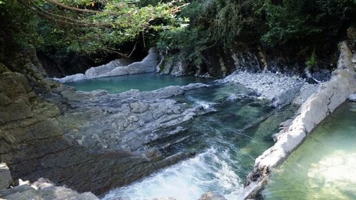 Райский уголок природы расположен в Сочинской национальном парке, примерно в 9 километрах от поселка Дагомыс. Почему-то местные жители называют это удивительное место с ударением на последнюю букву, хотя никаких предпосылок к такому искажению правил ударения лингвисты не обнаружили. Сами корыта представляют собой естественные ванны с безупречно прозрачной холодной водой, стекающей с гор, поэтому особенно многолюдно здесь в жаркие дни. Ступенчатые корытца переходят одно в другое, а речка протекает...