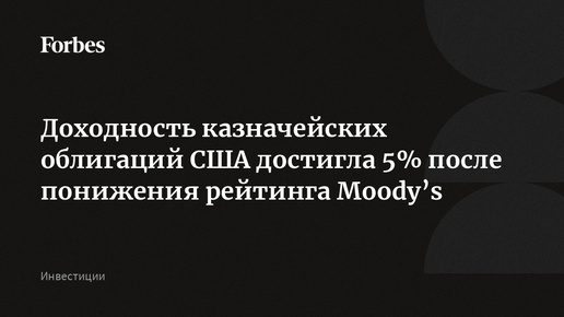 Доходность казначейских облигаций США достигла 5% после понижения рейтинга Moody’s