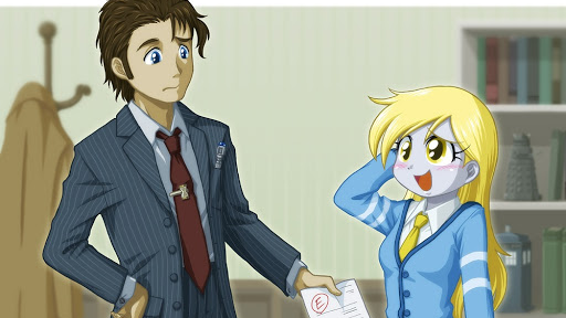 Фанаты отметили, что один обычный фоновый пони с изображением милашки в виде песочных часов имеет отличительное сходство с версией Дэвида Теннанта «Доктор британского телесериала« Доктор Кто »(2005). Таким образом, он взял псевдоним поклонника, Доктор Whooves, и является предметом многочисленных творений поклонников, хотя его официальное имя в сериале - Time Turner...
