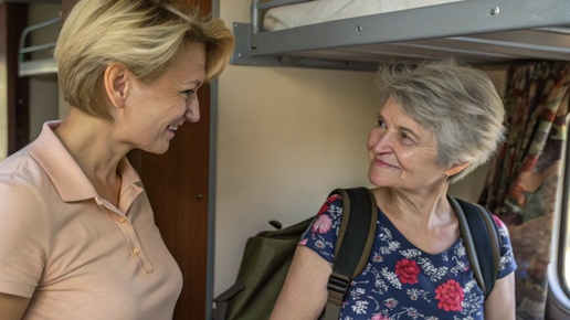 — Я бы и сама нижнюю полку взяла, да разве ж теперь найдёшь? Всё разобрали! А мне, больной да хворой, наверх карабкаться