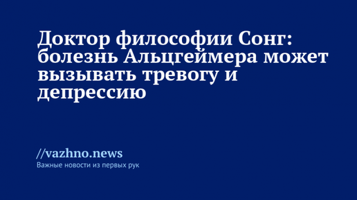 Доктор Сонг: болезнь Альцгеймера вызывает тревогу и депрессию