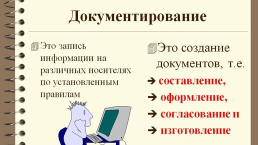 Документированием называется создание и правильное оформление документированной информации (документа). Документация бухгалтерского учета - совокупность материальных носителей информации, составляемая экономическим субъектом по установленным требованиям в ходе ведения им бухгалтерского учета и включающая в себя: а) первичные учетные документы; б) сводные учетные документы; в) регистры бухгалтерского учета; г) данные внутренней бухгалтерской отчетности. Такое определение содержится в Перечне терминов и определений, используемых в правилах (стандартах) аудиторской деятельности (утв...