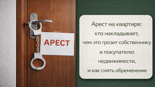 Что общего между кредитными долгами, разводом и уголовным делом? Все это может стать причиной для ареста недвижимости. Давайте разберемся, что такое арест недвижимости, кто его накладывает, чем это грозит собственнику и покупателю и, главное, как снять эту неприятную запись, если она уже появилась Если по-простому, арест квартиры или дома - это замок на дверях сделок. Собственник вроде бы владеет, может жить и пользоваться, но продать, подарить, обменять, сдать в аренду или передать в залог уже не получится...