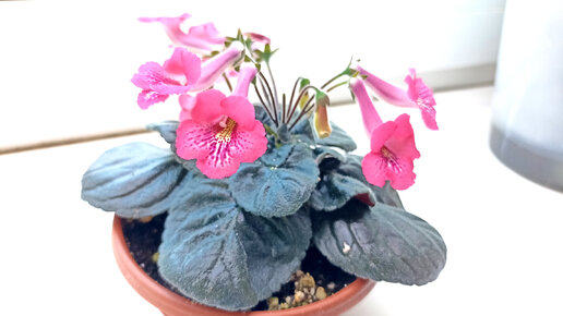 Воскресенье - такой день, когда не хочется про подкормки да пересадки. Расскажу про занимательное и красивое растение, которое попало в мой дом подарком от Таи. Миниатюрная синнингия Первая особенность - небольшой размер. Идеально для тех цветоводов, которые уже забили подоконники и полки горшками с любимчиками. Мини-синни готова аккуратно постоять в сторонке. И не просто постоять, а цвести в прямом смысле без остановки. Растение живёт у меня ровно год и не было дня, чтобы она не цвела. Сообщество любителей минисиннингий ВК сделало к названию растения приписку "Колокольчиковая лужайка"...