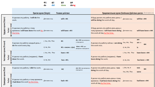 Коротко об английском глаголе Изначально нужно разделить все глаголы в английском языке на три группы: глагол to be, модальные глаголы (их всего несколько штук) и все остальные глаголы. Обычный глагол имеет 4 формы. Ф1 — форма глагола, как в словаре. Ф2 и Ф3 образуется путем прибавления окончания ed к основе глагола, за исключением неправильных глаголов, у которых Ф2 и Ф3 может различаться. Но таких глаголов около 300 штук, вы их легко запомните через практику, так как они самые популярные в речи...