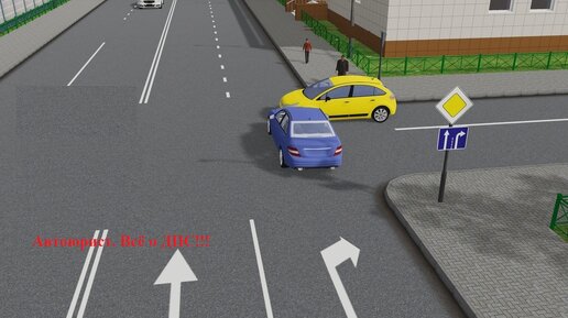 Доброго времени суток, уважаемые читатели! К нам в юридическую контору за помощью обратился водитель, он пояснил, что попал в дорожную ситуацию схожую на рисунке. Двигался он по траектории показанной на рисунке жёлтым автомобилем. Инспектор ДПС при разборе данного ДТП решил, что в данном случае вина будет обоюдная, у водителя жёлтого автомобиля в том, что не уступил дорогу транспортному средству приближающемуся по главной, а у водителя синего автомобиля в нарушении знаков движения по полосам (расположения на проезжей части)...
