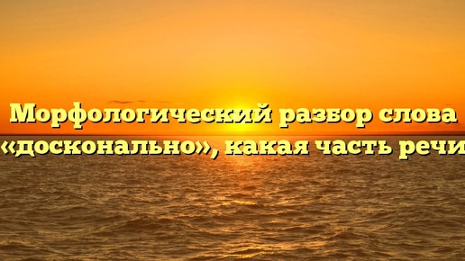 Морфологический разбор слова «досконально», какая часть речи Досконально — это наречие, образованное от прилагательного «доскональный» путем добавления суффикса -но. Морфологические свойства слова досконально: 4. Часть речи: наречие 5. Степень сравнения: не имеет 6. Падеж: не имеет 7. Род: не имеет 8. Число: не имеет Слово досконально обозначает выполнение какого-либо действия с максимальной точностью и подробностью. Например, рассказать о чем-либо досконально — значит рассказать об этом так, чтобы не было никаких неясностей и сомнений...