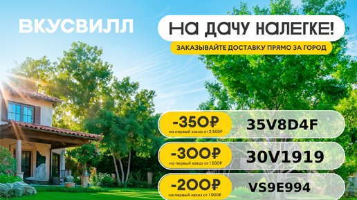 🛒 Доставка покупок за город в тот же день! Подробнее 👇🏻 Отдыхайте, занимайтесь своими делами – больше не нужно метаться по сельским магазинам со списком покупок! Во ВкусВилл можно заказать все самое необходимое на дачу: ⚡️ Готовую еду ⚡️ Консервы ⚡️ Крупы ⚡️ Напитки ⚡️ Все для уборки ⚡️ Товары для сада и огорода 💚 И многое другое! ВкусВилл доставит ваш заказ бесплатно, в тот же день! ➕ Ловите промокоды...