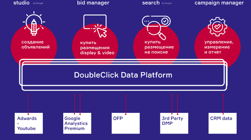 DoubleClick — система, которая создает условия для закупки рекламы в автоматизированном порядке. Платформа позволяет не только планировать, но и претворять в реальность маркетинговые кампании с использованием различных каналов. С помощью DoubleClick рекламу можно запускать сразу на нескольких цифровых площадках. Понять, как работает DoubleClick, нетрудно. В определенном месте страницы сайта можно поместить специальный код JavaScript, который и будет отвечать за показ объявления. А ведение самой рекламной кампании осуществляется непосредственно через DoubleClick...