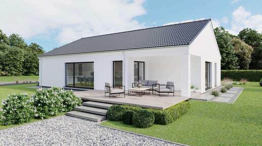 Знакомимся - проект одноэтажного дома с открытой кухней и гостиной - столовой. Кухня имеет небольшую кладовку. Три спальни, родительская со своей ванной. Широкая прихожая. Узкое вертикальное окно рядом с входной дверью - на любителя. Не рационально - "съедает" площадь прихожей у стены, но многим заказчикам такой вариант нравится. Примерные габариты дома в плане 11х15 метров. Уклон крыши составляет 25°. Несколько примеров дизайна интерьера. Проект одноэтажного дома предполагает строительство из кирпича или блоков (газобетон, керамоблоки и др...
