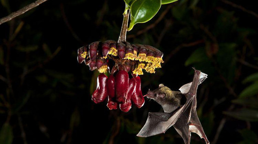 Сегодня снова хочу поведать вам про удивительную дружбу растений и животных. Герои этого рассказа – кубинская лиана макгравия эвения и местная летучая мышь по имени листонос Лича из рода однолистых листоносов. Однолистые листоносы – это махонькие летучие мышки, длиной тела не превышающие 8 см, а обычно и того меньше. Ведут они типичный летучемышиный образ жизни, днём отсыпаясь во мраке пещер, а ночью выбираясь на сбор провианта. В плане подбора меню они совершенно не вредничают, с удовольствием уплетая сочные плоды, цветочный нектар, а иногда и насекомых...