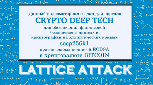 Одна слабая транзакция в ECDSA в блокчейне Биткоина и с помощью Lattice Attack мы получили Private Key к монетам BTC