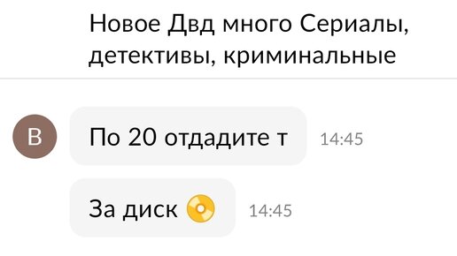 Выставлен у меня большой лот ДВД дисков, около 120 штук. И вот, очередной покупатель пишет сегодня, что хочет купить, причём, спрашивает стоимость а все. Я подумала, что держать, если хочет человек все взять, можно и стоимость понизить, не страшно. Говорю, предлагайте цену. И фото ему отправила Дальше он просит показать все названия. Ну ок, у меня есть они отфотанные, в объявление просто все не влезли, отправила ему фотографии. На...