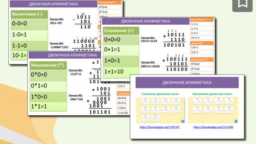 PS: "Данная статья призвана познакомить вас с представленным методическим материалом. Его использование является добровольным — вы можете скачать его, если он вас заинтересует, или выбрать другую разработку, которая лучше соответствует вашим потребностям. Если у вас есть свои идеи, вы также можете создать собственный материал. Благодарим за внимание и понимание!" Методическая разработка по теме "Системы счисления. Двоичная арифметика". Цель: Помочь учащимся освоить основные арифметические операции в двоичной системе счисления: сложение, вычитание, умножение и деление...
