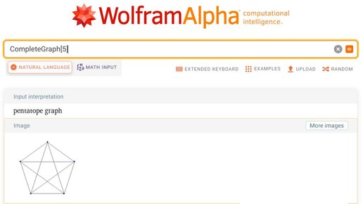 Полный и двудольный граф в WolframAlpha