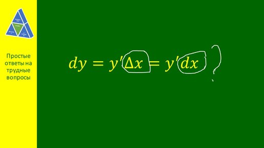 Математика онлайн. Доступно о сложном Добрый день! Если Вы изучали или изучаете высшую математику, то, возможно, вспомните, как в расчетах dx заменяли на Δx и, наоборот, Δx - на dx. Давайте разберемся, в чем причина. Если x - независимая переменная, то ее дифференциал dx принято отождествлять с приращением Δx. Т.е. формулу дифференциала dy функции y(x) можно записать как через dx, так и через Δx: Кстати, определение дифференциала независимой переменной хорошо согласуется с определением дифференциала функции...