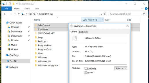 Папки "$GetCurrent" и "$SysReset". Что это за папки и можно ли их удалить?